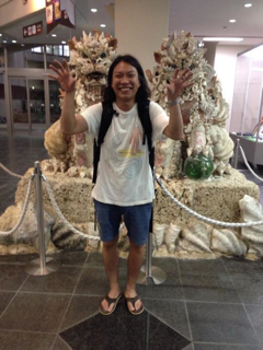 虹の看板前で