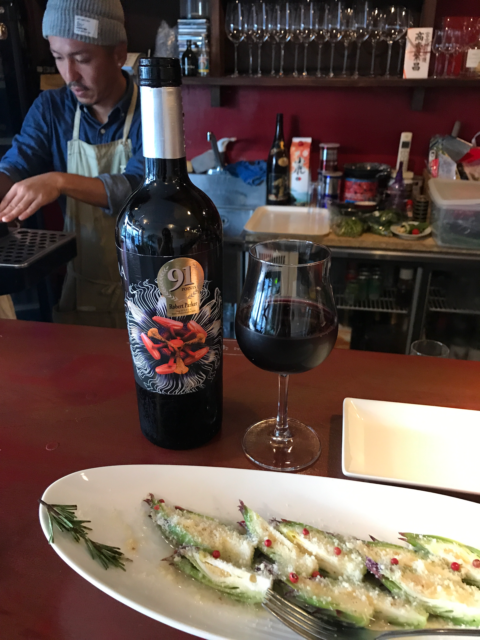 ワインボトルを抱えて
