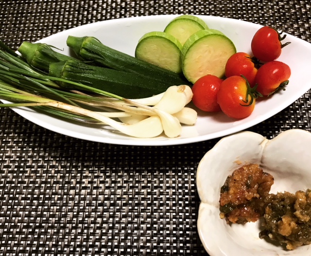野菜をみそディップにつけ